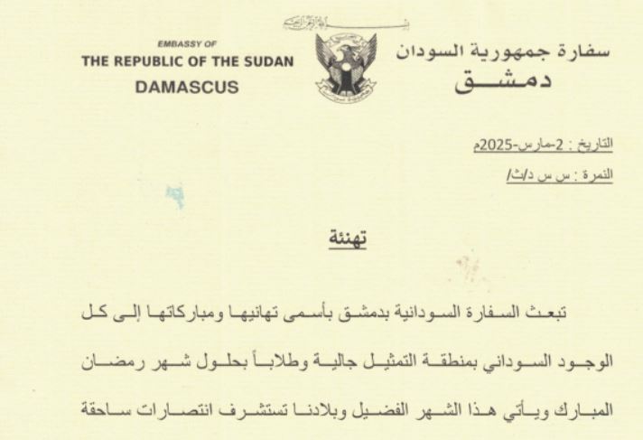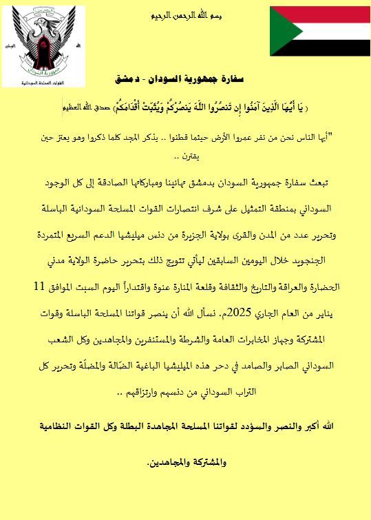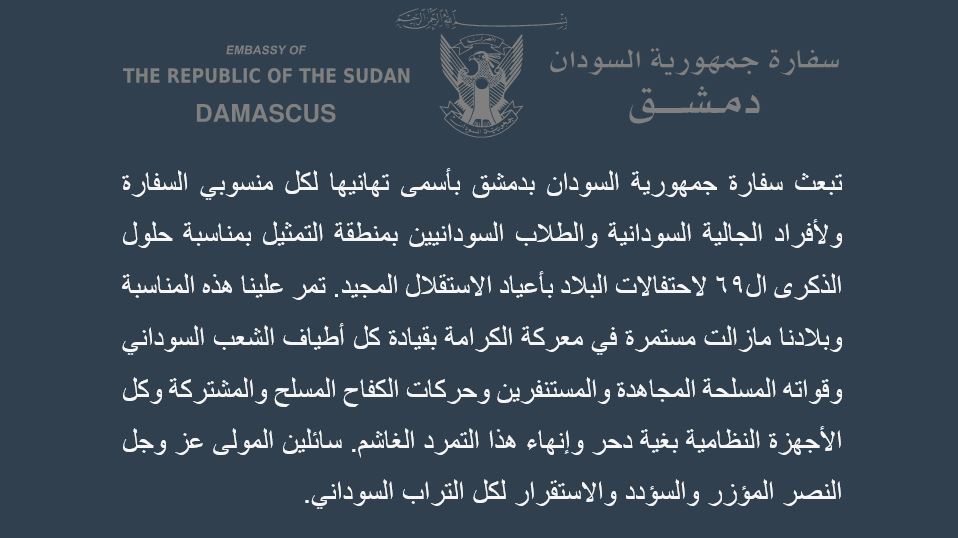 facebook: سفارة جمهورية السودان - دمشق instagram: سفارة جمهورية السودان - دمشق